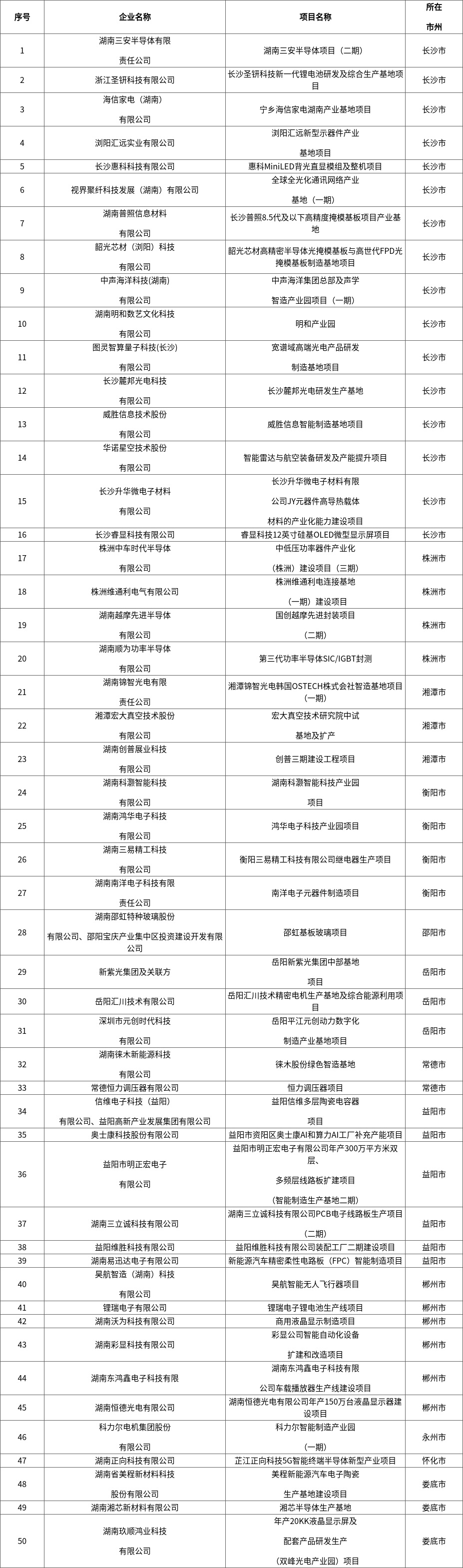 2026年湖南電子信息制造業(yè)重點項目清單